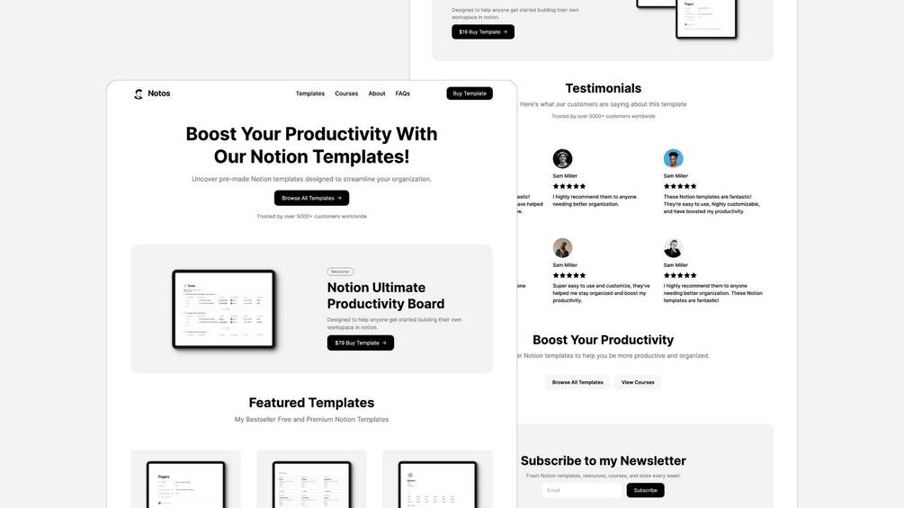 Notos - Notion Creator Carrd Template for carrd.co perfect for your personal website as notion template creator to showcase your awesome work.